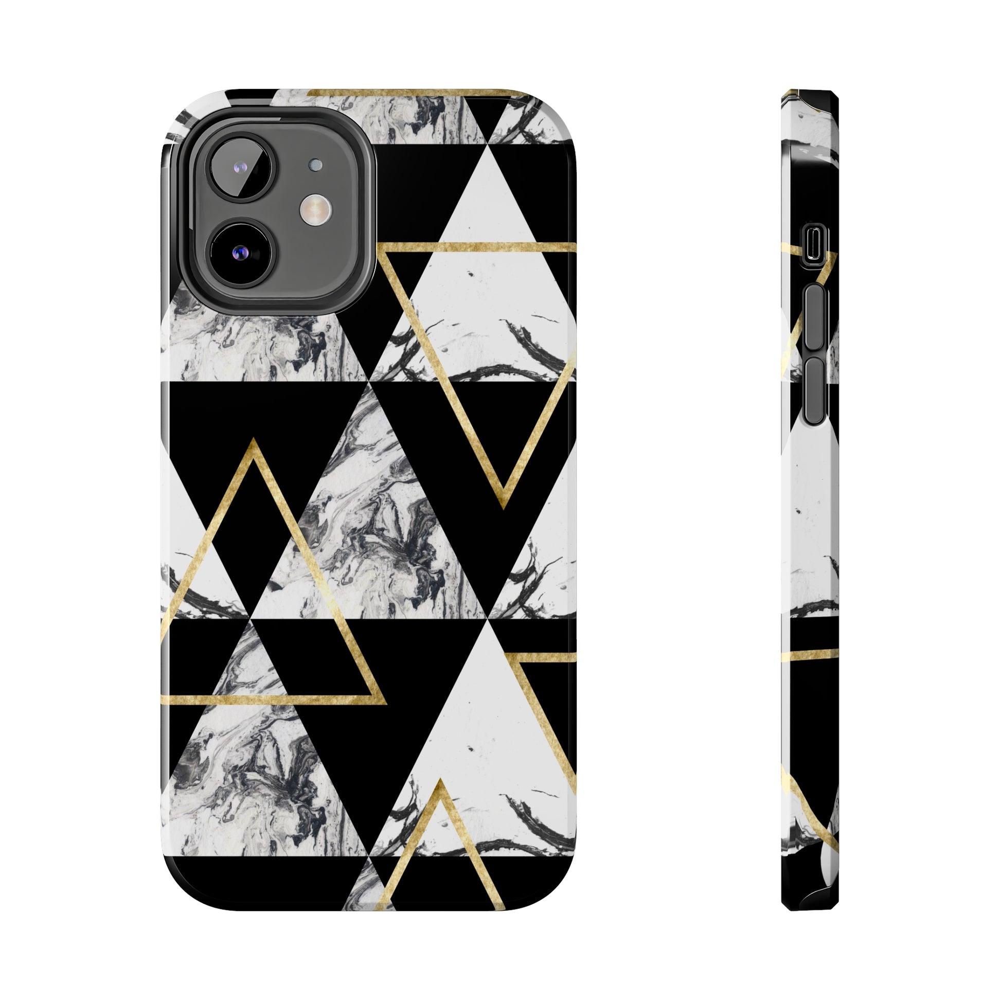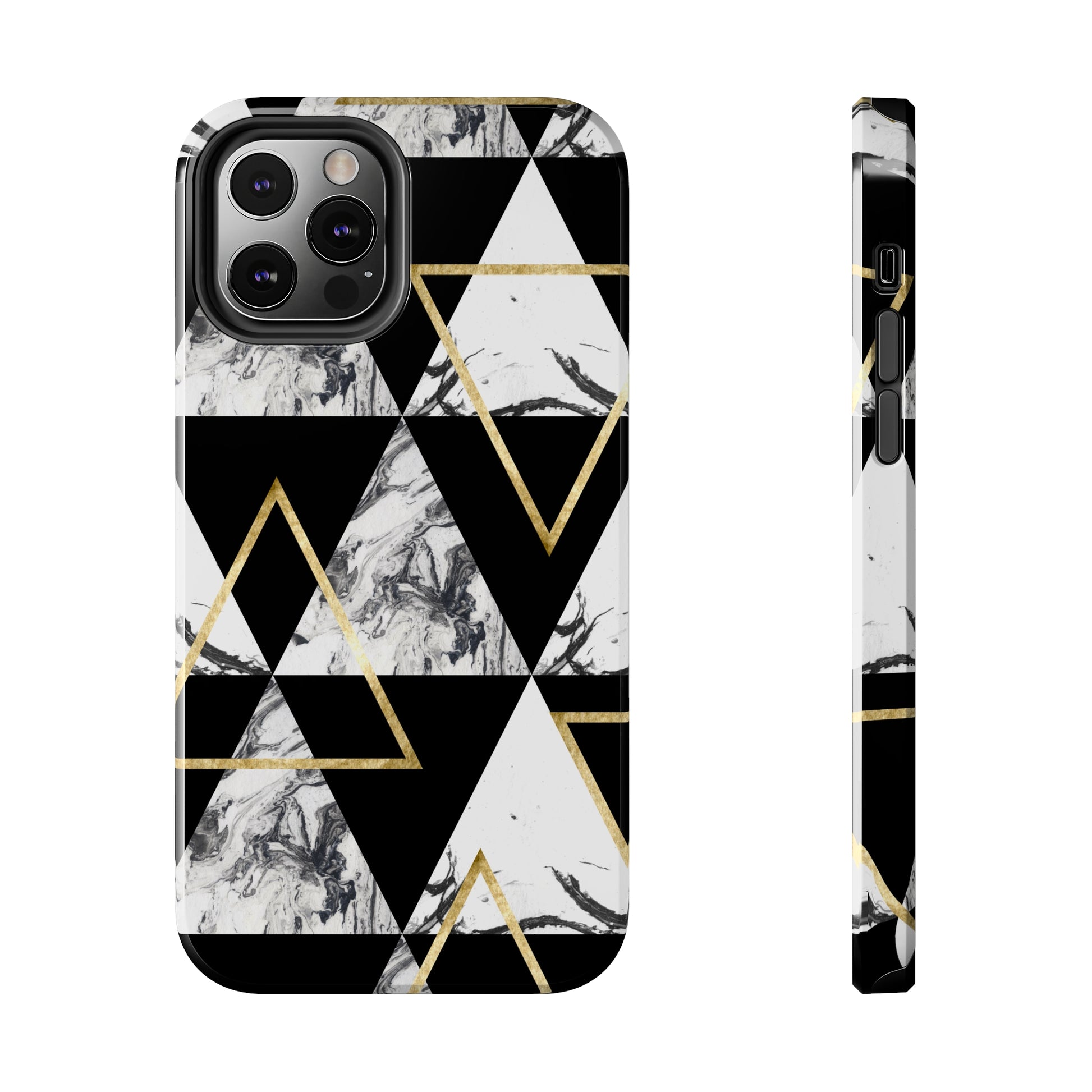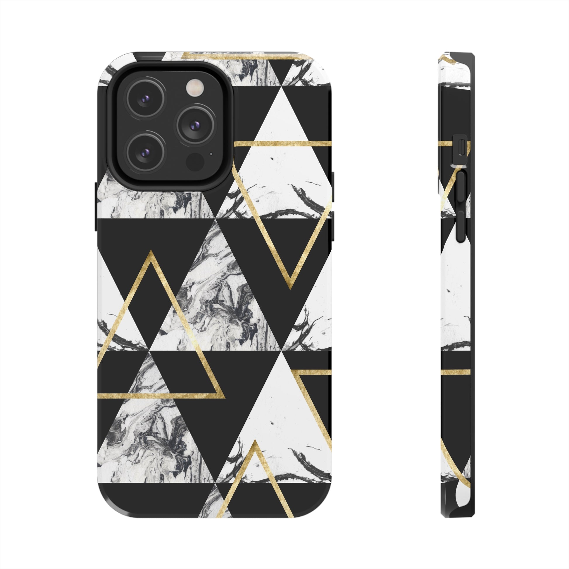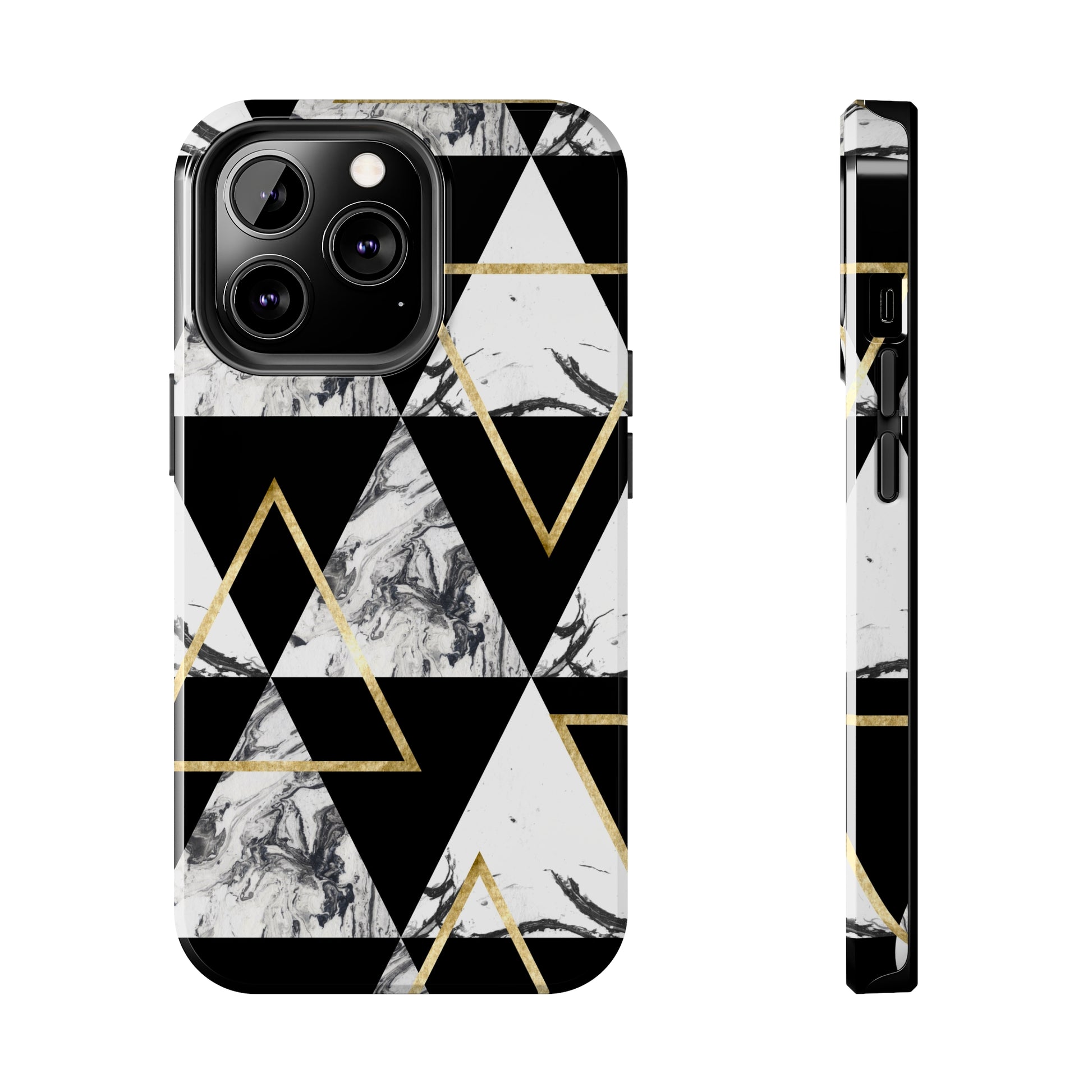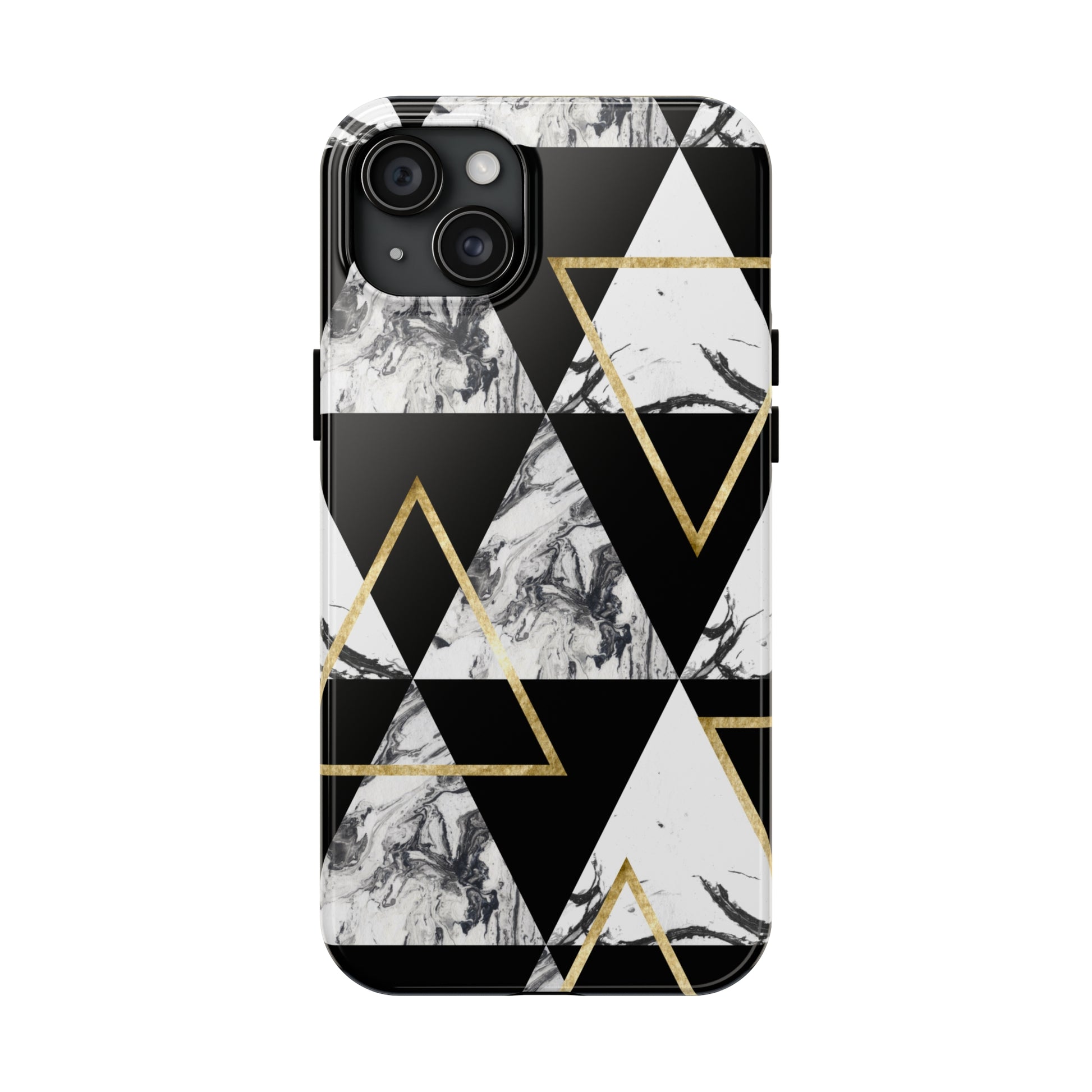 Dive into the realm of sophistication with the 'Geometric Elegance' phone case, where art meets modernism. The design features a dynamic collage of marble textures and sharp geometric shapes, all unified by a classic black and white palette with touches of opulent gold. It’s a statement piece that speaks to a refined taste and a love for contemporary design.